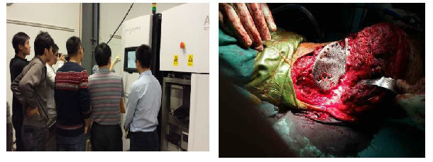 同时,上海交通大学附属第九人民医院也与相关企业单位合作,利用最先进的钛合金3D打印机,将3D打印出的个性化钛合金假体用于关节外科疑难患者中,其中较多运用于骨盆肿瘤、骨缺损、关节翻修手术、骨畸形矫正等病例。