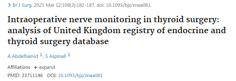 甲状腺手术术中神经监测:英国内分泌和甲状腺外科手术登记数据库分析