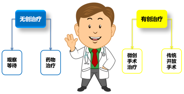 有创治疗一般指的是手术治疗,包括微创手术治疗和外科手术治疗。