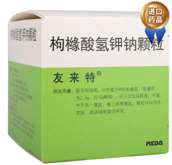 药物治疗:如友来特;中华医学会泌尿外科学分会制定的《中国泌尿外科疾病诊断治疗指南(2014版)》明确指出,口服枸橼酸氢钾钠(商品名:友来特)可碱化尿液,溶解尿酸结石,是预防含钙尿路结石的有效药物。