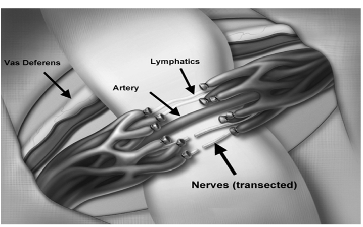 显微镜下经外环口精索静脉结扎术相对于其他术式具有如下优点:可完全避免损伤动脉、动脉分支、输精管,无并发睾丸萎缩的可能,术中保留精索淋巴管,能最大限度减少睾丸鞘膜积液及阴囊水肿的发生,同时结扎曲张的静脉及分支、侧支充分,术后复发率低。优点突出、创伤小、痛苦小、费用低、并发症少、复发率低、疗效确切、安全的微创治疗技术。