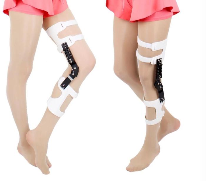 个性化3D打印单侧减荷式膝关节支具,不同于传统的使用石膏取模的方式,通过光学扫描仪获得体表信息,结合患者下肢CT数据通过计算机精准设计,部分或全部3D打印工艺制作完成。患者适配精准调整后佩戴矫形器拍摄X光片,做到精准矫正与治疗。