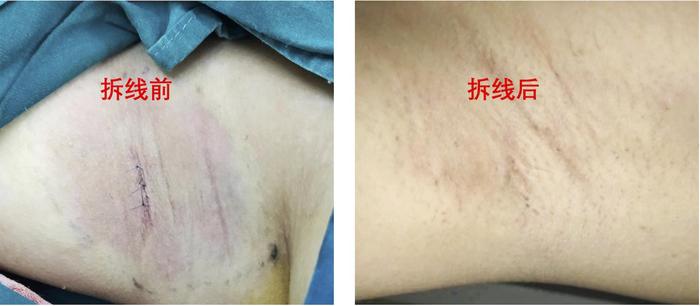 一般来说我们建议手术后2周内拆线。采用可吸收线缝合伤口可以避免术后拆线,让其自然脱落。但同时也增加了部分患者的线结反应。而恰恰这些患者对于类似缝线或者胶带的反应明显,不及时去除就可能增加伤口的疤痕增生。