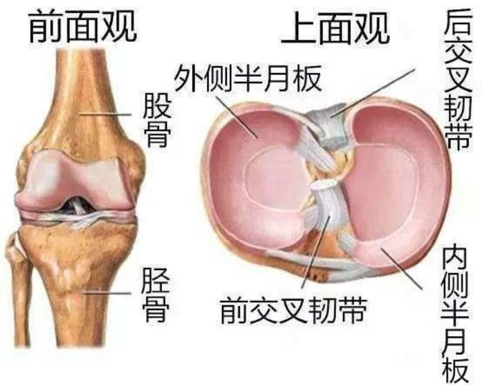 半月板是介于股骨和胫骨平台之间的半月状纤维软骨,内外侧各一个。其外侧缘较厚,内侧缘较薄;上面微凹,与股骨内外髁相适应;下面平坦,与胫骨平台关节面相接。内侧半月板呈"C"形,外侧半月板近似呈"O"形。