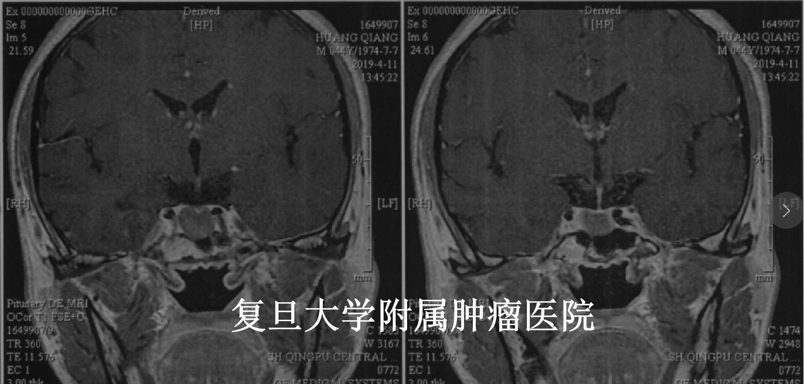 该患者因头痛伴视物模糊半年前来就诊。复旦大学附属肿瘤医院神经外科高阳