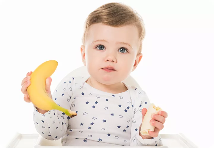 9月龄以后,可以给宝宝吃软的香蕉块,让宝宝自己剥皮、用手拿着自己吃,还能锻炼手眼协调能力哦。