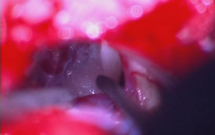 探查三叉神经尾端和其它区域,未发现其它血管压迫,手术结束