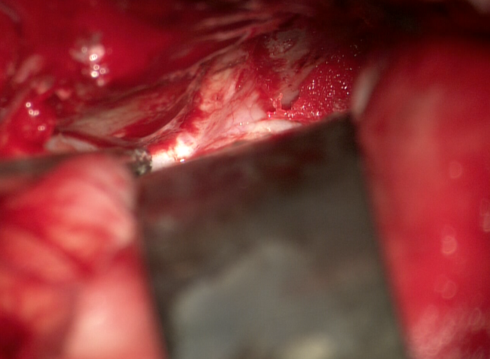 当天下午,郑学胜团队在全麻下实施左侧视神经管减压术,术中证实视神经管眶口果然存在小骨折片,同时视神经管存在骨性压迫,因此去除骨折片,并磨开视神经管上壁,使视神经得到充分减压。