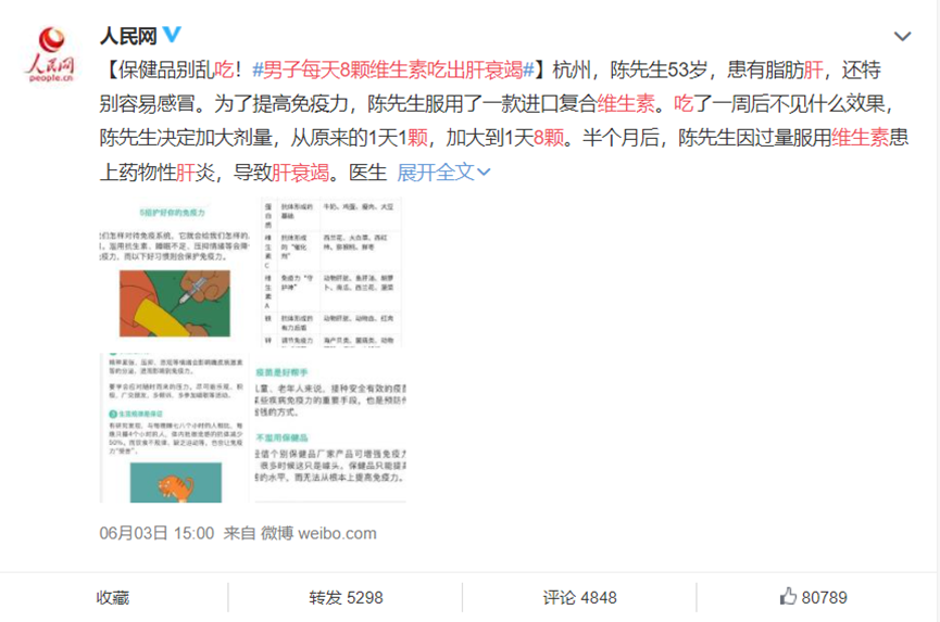 前段时间一个热门新闻,男子一天服用8颗维生素,半个月后出现药物性肝炎,引发肝衰竭。