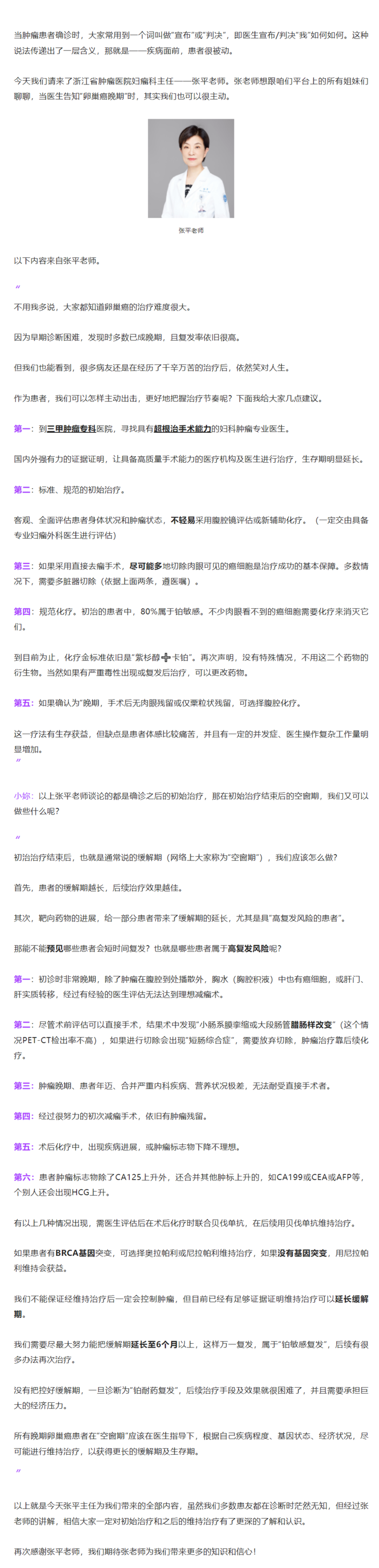 文章内容转载自:科普号“与妳同行卵巢癌患者社区”