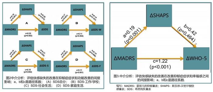 同时可以看到快感缺失的改善与整体功能和生活质量的改善相关(表1)。