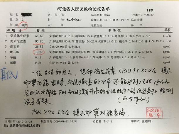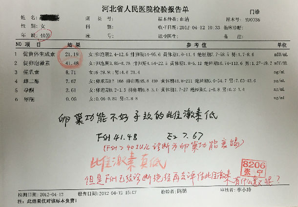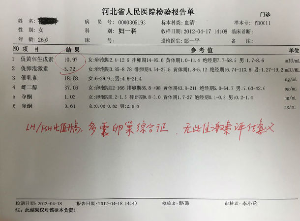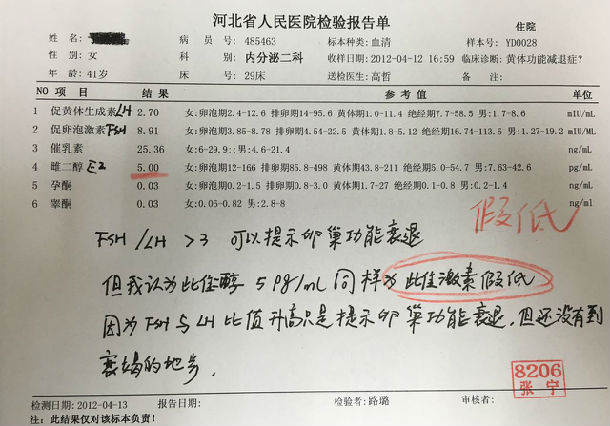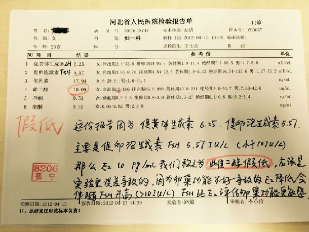 我们医院是省级三甲医院,我在此声明我们医院查的也不准,但是我不会教给我的病人用一种绝对精准的眼光去看雌激素的水平。最重要的还是我们看雌激素的态度。如果你只是为了求准我希望你不要来我们医院查激素。我也是在我们医院这个炼丹炉里被炼就了火眼金睛。