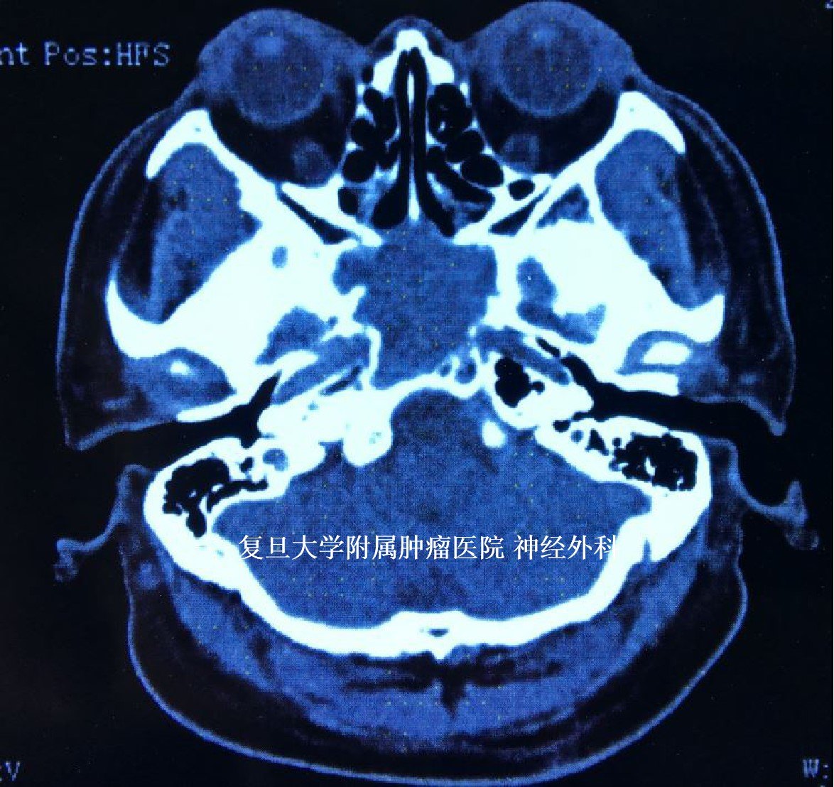 头颅CT显示:鞍区占位,颅底骨质破坏。
