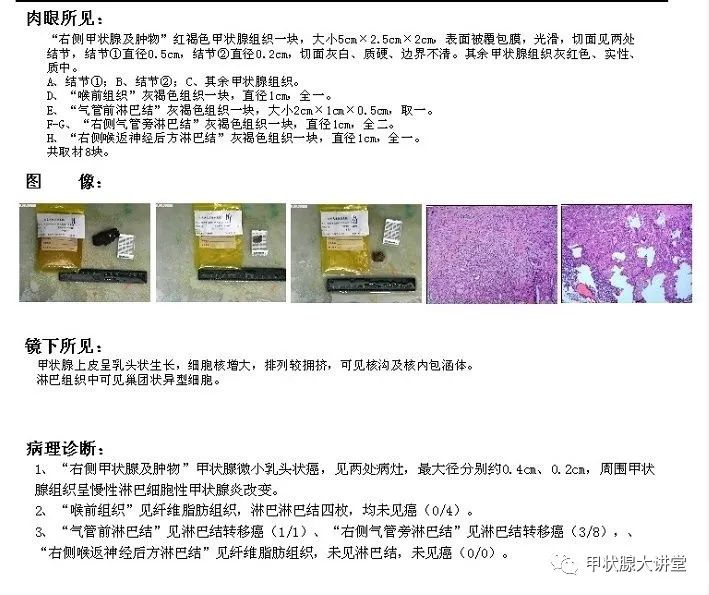 前面有发我的手术经过,由于术前报告未显示有转移,因此手术方式只是对右侧中央区淋巴结进行了清扫。而同病房病友术前B超即显示有转移,因此淋巴清扫的范围比我要大。