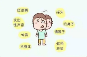 5)咳嗽常伴有眨眼、皱眉、点头、摇头、翻眼、耸肩、踢腿等其他症状;