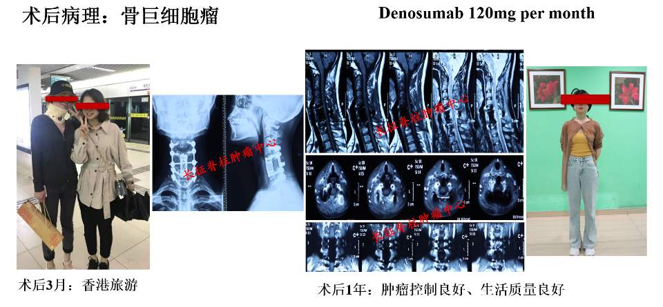 脊柱骨巨细胞瘤是中国人比较常见的低度恶性骨肿瘤,术后复发了高达30-50%。初次手术彻底切除肿瘤是唯一的机会。这是一例颈6椎体骨巨细胞瘤,伴病理性骨折。我们团队为患者实施了颈6椎体enbloc整块彻底切除手术,术后辅助狄诺赛麦规律治疗。患者随访观察一年,肿瘤控制良好,生活质量良好,又恢复了正常的工作生活。