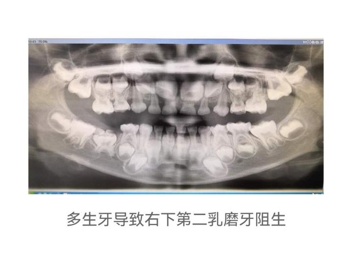 多生牙的常见危害 2023年02月27日 43人阅读 返回文章列表 1.门牙间隙 2.前牙拥挤不齐 3.恒牙、乳牙阻生,不能萌出 4.颌骨囊肿,含牙囊肿 5.恒牙过早萌出 6.多生牙进入鼻腔 针对多生牙应该要早发现,早治疗,避免引起严重的并发症,定期进行口腔检查是早期发现、诊断、治疗多生牙的有效方法。 顶 0 分享到: