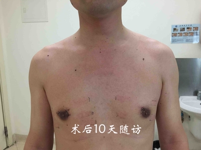 2016年3月7日,邱伟华主任医师和吴庆华副主任医师在瑞金医院北院完成了上海市首例3D立体腔镜微创颈部无瘢痕甲状腺切除手术。患者李*良,男性,31岁,体检发现甲状腺结节,超声见:左甲状腺中上部近外侧21*9.2*13毫米肿块。虽然患者肿瘤>1厘米,但是根据患者的年龄、病情、体型和美容需求,和患者充分沟通后决定进行3D立体腔镜微创颈部无瘢痕甲状腺切除术。借助于术中偏光式3D立体腔镜镜头以及高清3D显示屏,“纤毫毕现”地呈现出颈部动脉、静脉、神经甚至毛细血管完美的立体影像,相比2D腔镜手术,3D腔镜手术仅耗时1.5小时,出血量仅10毫升,更加精准地切除了肿瘤。患者术后10天随访,恢复非常快速,没有任何不适。