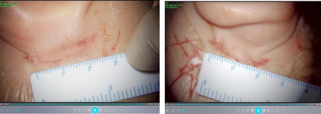 首先,就是手术微切口,显然手术切口开放较大,更便于医生的操作,但众所周知,手术切口越小,创伤就越小,不仅极大降低了术后感染风险,伤口愈合也会更加快速,术后平整美观,这也是每位患者和患者家长所追求的理想手术效果。所以经验丰富的耳科医生在保证手术顺利进行的前提下会极力追求更小切口,减少术后愈合时间、同时也让患者和家属更加安心。