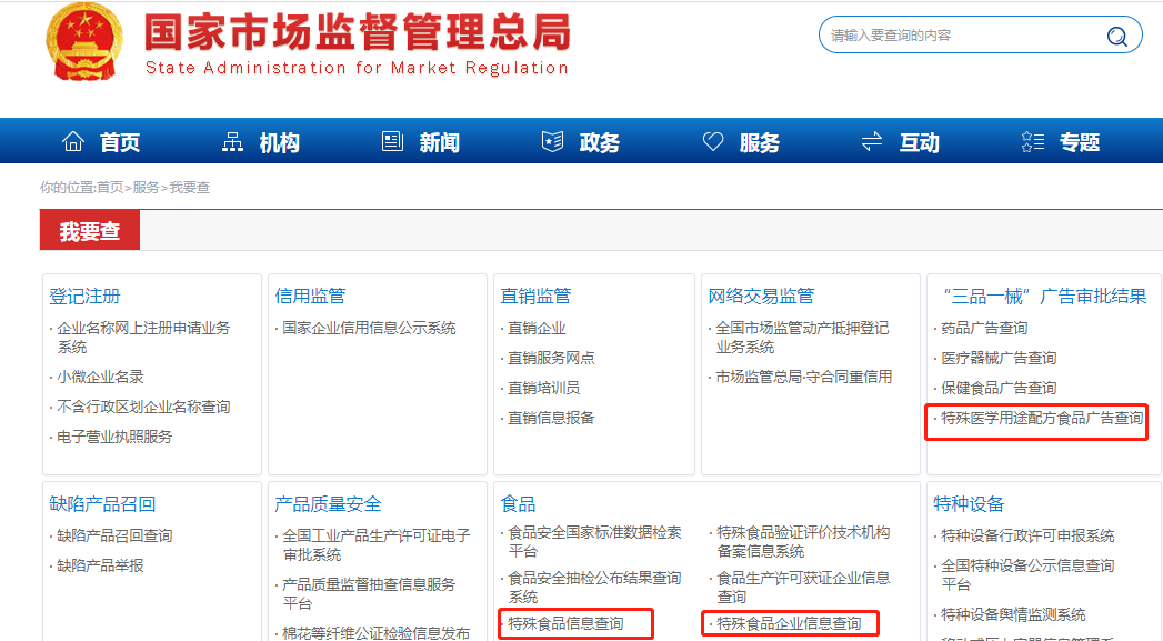 保健食品、婴幼儿配方乳粉产品等都可查询。