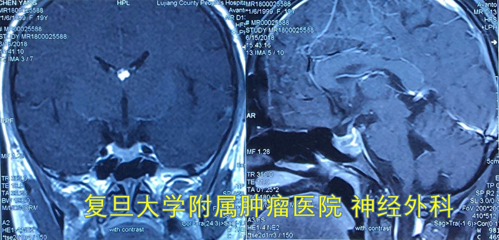 一个20岁的女大学生,正直青春年华,可最近几个月发现月经推迟甚至不来。在父母的一再督促下才去医院妇产科就诊,未果。辗转到上海求医,他们慕名来到复旦大学附属肿瘤医院神经外科就诊,当她诉说自己的病情和痛苦后,我们已初步断定是垂体问题,完善鞍区增强磁共振、视力视野及激素检查,果然是“垂体瘤”惹的祸!复旦大学附属肿瘤医院神经外科高阳
