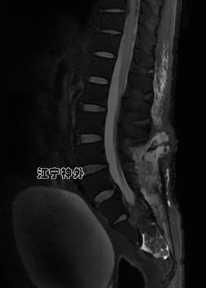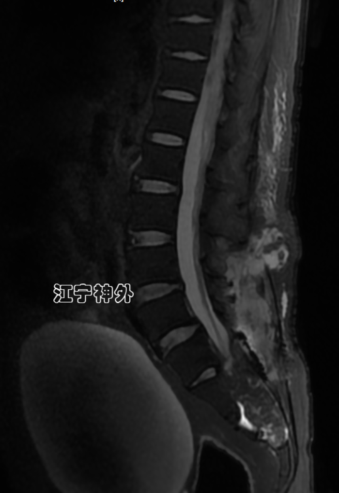 患者中年男性,因骶尾部、右侧臀部、下肢酸痛1年,加重1月来诊,在当地医院检查发现巨大骶管囊肿,经当地医生推荐,通过网络问诊平台,预约到南京医科大学附属江宁医院神经外科郑学胜主任门诊就诊。