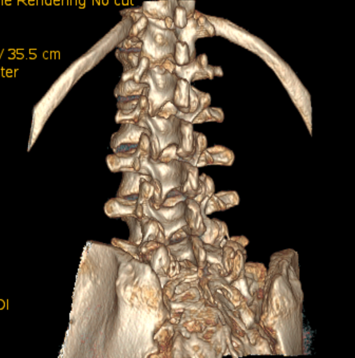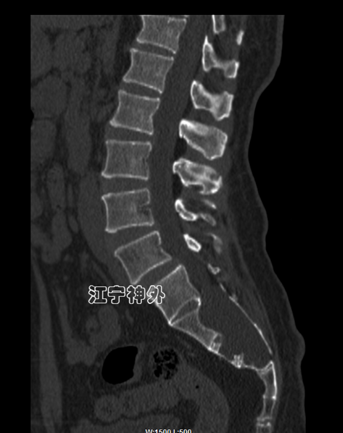 另外,由于巨大骶管囊肿的长期压迫,患者的骶骨已被广泛侵蚀破坏,无论是椎体还是椎板骨质都已大量损失,很多部位已经穿通。