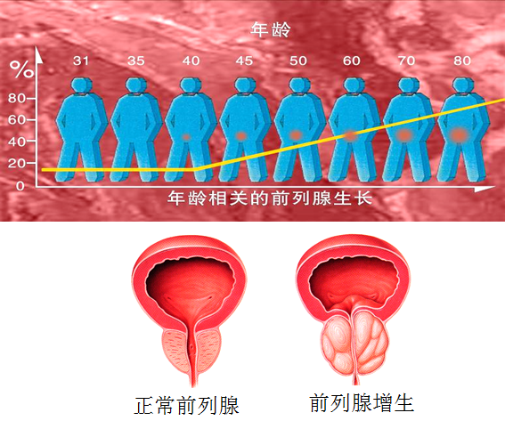 关注前列腺疾病 畅享健康生活(科普系列二) 2017年07月31日 9361人阅读 返回文章列表 了解前列腺增生1、正常男性,随着年龄的增长,在体内雄性激素的作用下,前列腺体积会不断的增大,这是正常的生理过程。2、部分男性前列腺增长速度快,当年龄超过60岁时,前列腺体积明显增大,导致出现排尿困难,排尿刺激症状,称之为良性前列腺增生。3、最新数据显示:我国50岁以上老年男性前列腺增大发生率达100%。良性前列腺增生发生率达40%。 顶 0 分享到: