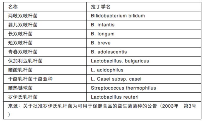 在使用菌种的选择上,原卫生部 2001 年颁布《可用于保健食品的益生菌菌种名单》,2010 年颁布《可用于食品的菌种名单》和 2011 年颁布《可用于婴幼儿食品的菌种名单》。
