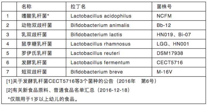 [1]关于发酵乳杆菌CECT5716等3个菌种的公告(2016年 第6号)