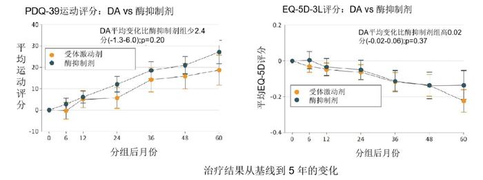 该研究得出结论:在出现左旋多巴无法控制的运动并发症的PD患者中,添加使用MAO-BI或DA的患者生活质量优于添加COMTI的患者。而MAO-BI与DA对患者报告的运动能力改善效果等效。