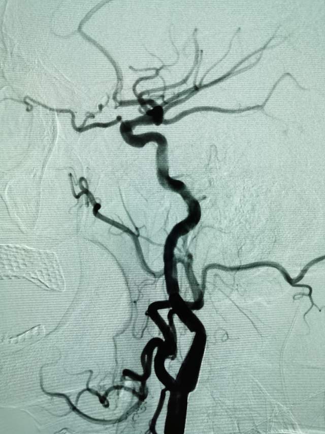 向家属讲明来龙去脉之后,家属和患者本人积极寻求进一步的治疗。于是限期给予病变简单外科干预,消除了潜在的风险,远端的有效血流也相对增加了(有利于功能恢复),再也不用担心“天上”掉石头下来砸着“脑袋”了。