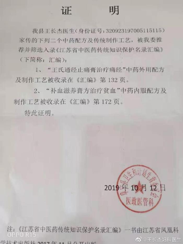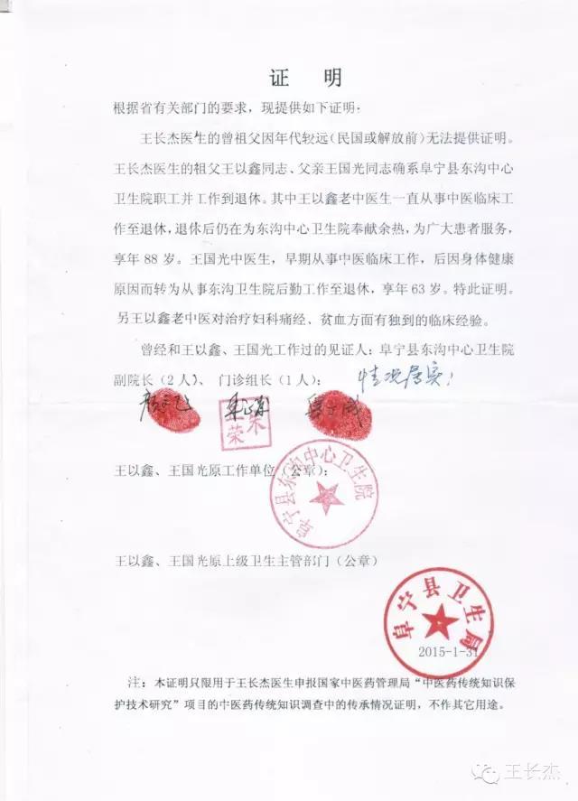 一、下面附上的是我当地有关部门出具的证明我(王长杰医生)的确是一位真数代中医生: