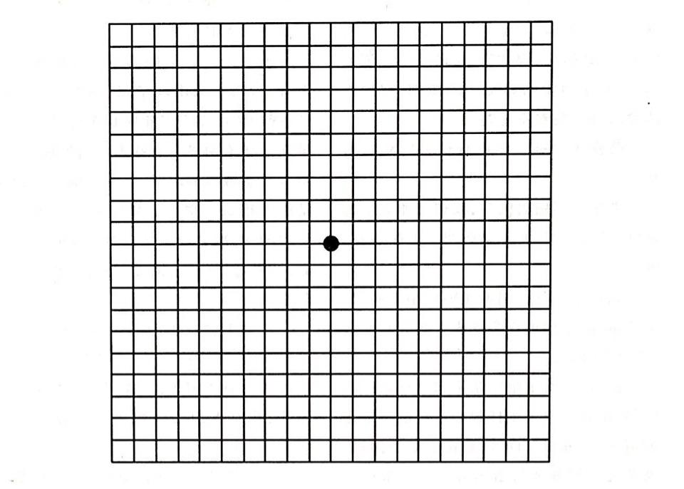 白内障术后如何自查眼睛是否出现了问题——看这张图 2022年03月20日 8006人阅读 返回文章列表 白内障手术之后,最怕出现眼底问题,可导致视力急剧下降甚至失明。1)眼底黄斑水肿,主要是因为眼底血管通透性有问题,常发于糖尿病的病人、发过葡萄膜炎的病人,以及患老年性黄斑变性的病人等; 2)视网膜脱离,多见于高度近视、青光眼的病人等。 那么怎么才能自查眼睛是否出现了这些问题呢?来看这种图---阿姆斯勒方格表 自测步骤: 1.把方格表放在视平线30厘米之距离,光线要明亮 2.如有近视或老花,需佩戴原有的眼镜进行测试。 3.用手遮住左眼,右眼凝视方格表中心点。 4再重复步骤1-3,检测左眼。 当凝视中心点时,发现方格表任何直线出现扭曲或空缺,提示眼底肯定出现了问题,需要尽快到医院就诊。 顶 1 分享到: