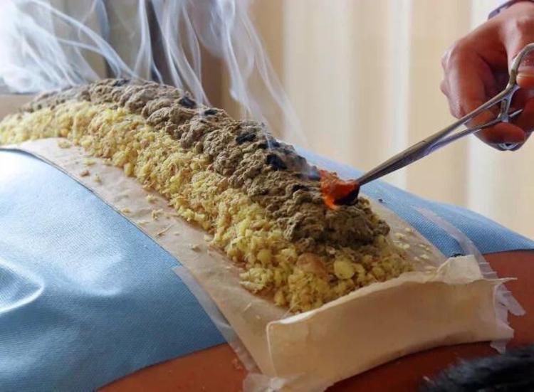 督脉灸是三伏灸中最有特色的灸法之一,以温阳和除湿为其显著特点,尤其是在三伏天更可以起到事半功倍的效果。这种灸法来源于民间的隔物灸,几经改良,加入了我们科特制的督灸粉,在施灸时沿脊柱铺敷药物,形如长蛇,故又名长蛇灸。
