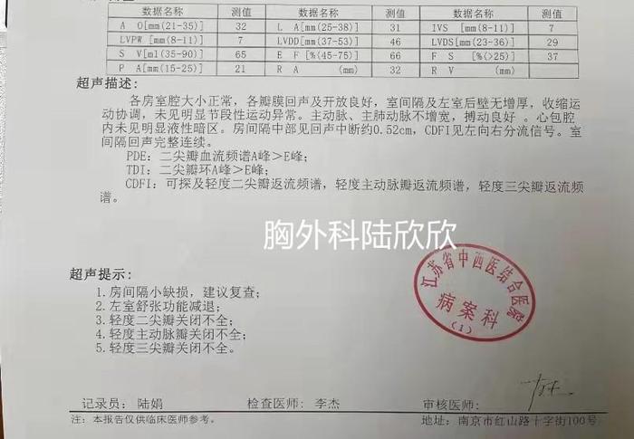 上图为图4。可见房间隔缺损大小5.2毫米。已经不小了。房间隔缺损有什么危害:正常的左心房血液进入左心室,再供应全身;房间隔缺损以后,部分左心房血液进入左心室,再供应全身,部分左心房血液经过缺损到达右心房,再进入右心室,供应双肺。所以,这个病人有房间隔缺损,缺损还不算小,意味着这个病人的肺血管阻力要高一些,心脏功能差一些,术后容易心功能衰竭。房间隔缺损的病人往往从小容易呼吸道感染,生长较常人差一些,因此这个病人比正常男性矮一些。