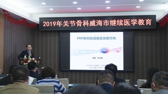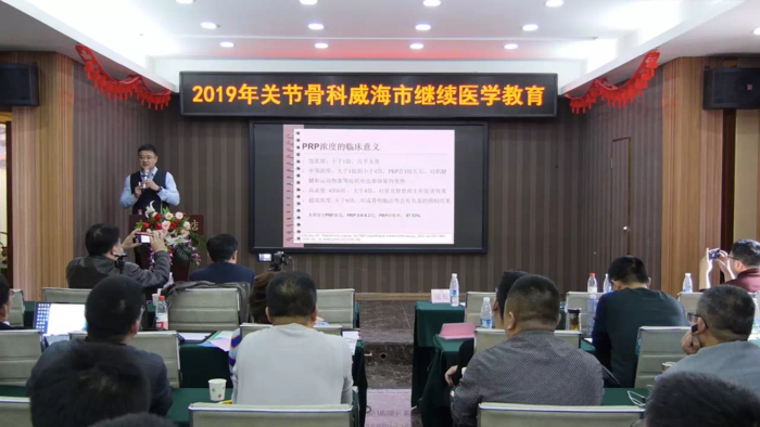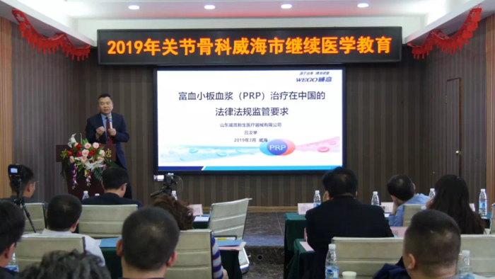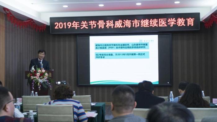 红瓦绿树,碧海蓝天,骨科专家齐聚威海-聚焦PRP!2019年3月16日,由威海市立医院主办、山东威高新生医疗器械有限公司承办的2019年关节骨科威海市继续医学教育会议在威海召开。威海市立医院关节骨科于洪波教授主持开幕式并隆重介绍出席会议的嘉宾,上海交通大学附属第六人民医院副院长张长青教授,上海交通大学附属第六人民医院袁霆教授,威海市立医院郭燕庆博士,山东威高新生医疗器械有限公司总经理孔建明,威海安辰贸易有限公司总经理于晓东,山东威高新生医疗器械有限公司研发副总吕汝举等作为特邀嘉宾出席本次会议,本次会议吸引来自北京、上海、广东、辽宁、吉林、湖北、甘肃、山东等14省市的160多位同行,共同探讨PRP技术的热点、难点话题。